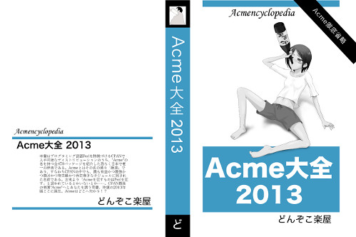 直前での告知ですが、C84の2日目(日曜日)東R15a「どんごこ楽屋」で参加します。頒布物は恒例の『Acme大全2013』。